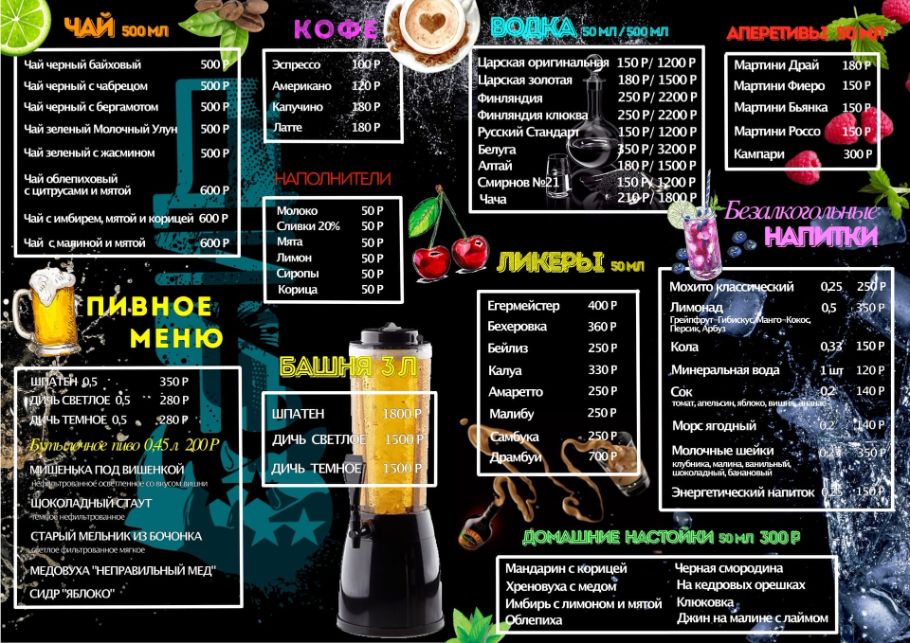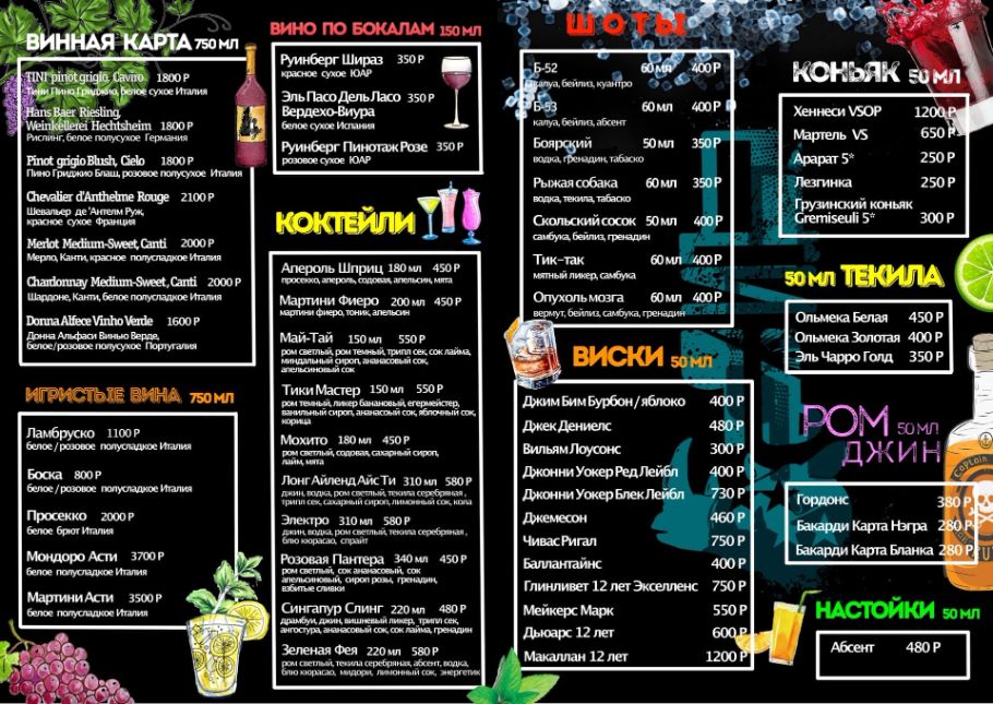 Наш зажигательный бар поможет вам ярко провести вечер как одному, так и в компании любого размера!